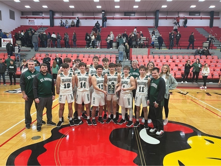 It’s been a great day in Ste. Genevieve Athletics and it was capped off with the first ever Boys Conference Tournament Championship over North County by a score of 64–59! Way to go, Dragons!